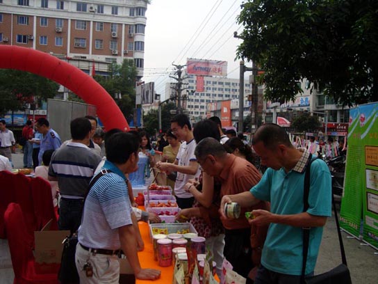 我公司參加<<食品安全法>>實施一周年宣傳活動!活動期間我公司免費發(fā)送飲用水贈飲卷、茶香蜜餞等產(chǎn)品。受到廣大群眾的認可!