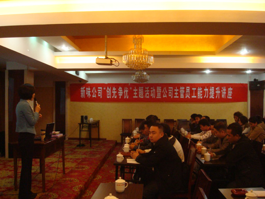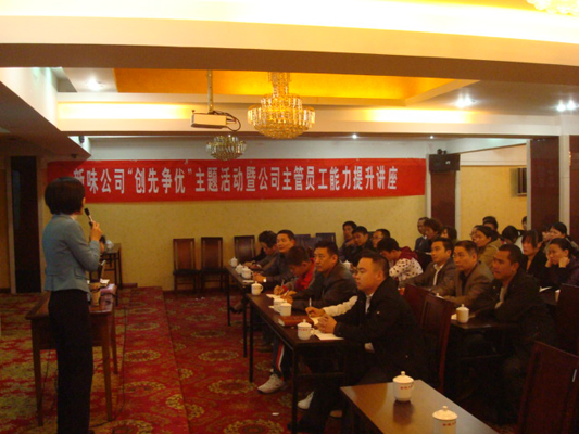 為進(jìn)一步推進(jìn)“創(chuàng)先爭優(yōu)”活動(dòng)深入開展,11月27日,在市非公經(jīng)濟(jì)創(chuàng)先爭優(yōu)指導(dǎo)組的指導(dǎo)下,福建新味食品有限公司在福安市金源大酒店五樓舉行“創(chuàng)先爭優(yōu)”主題活動(dòng)暨公司主管員工能力提升講座。此次講座以“組織創(chuàng)先進(jìn),黨員爭優(yōu)秀,企業(yè)有發(fā)展,員工得實(shí)惠”為指導(dǎo),旨在通過對(duì)主管員工的培訓(xùn),增加其精神食糧,拓展其見識(shí)面,為提升員工創(chuàng)造能力打下堅(jiān)實(shí)基礎(chǔ)。講座特邀深圳新高度企業(yè)咨詢有限公司張慧女士主講。講座分為企業(yè)唯一不變的就是改變、企業(yè)創(chuàng)造最佳成果的兩大思維、創(chuàng)造最佳成果的三大能力三個(gè)專題,深度詮釋了企業(yè)創(chuàng)新的重要意義及創(chuàng)新思維的培養(yǎng)?,F(xiàn)場氣氛活躍,通過理論講解、現(xiàn)場討論等多種形式,極大地調(diào)動(dòng)了參會(huì)人員的積極性,公司員工紛紛表態(tài)要將“創(chuàng)新是企業(yè)的生命力”的理念貫穿于工作始終,講座收效良好。共有39名該公司主管員工參加了此次講座。