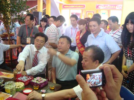 2011年6月16日寧德“投洽會”新味館前寧德市委書記陳榮凱、福安市委書記李轉(zhuǎn)生、市長楊培欽光臨品嘗“新味茶食”并給予充分的肯定和建議,公司所帶的產(chǎn)品被顧客搶購一空并與多家經(jīng)銷商和大型茶企簽訂了合作意向和加盟協(xié)議。
